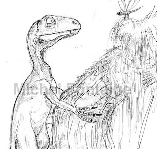 A gauche,l'Archeopteryx. Peinture numérique. 2006.